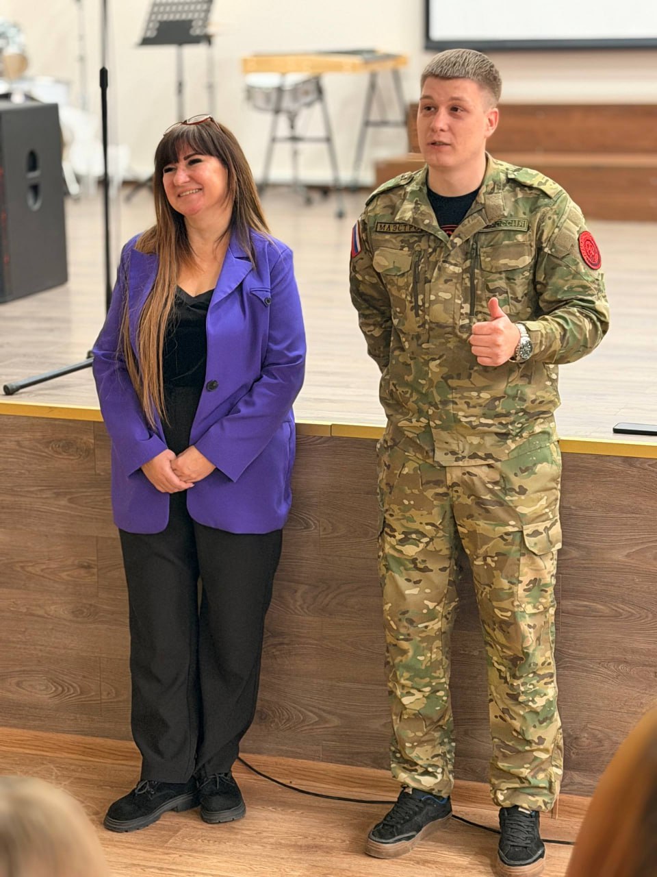 Семён Назаров окончил нашу школу по классу трубы (преподаватель — Борис Павлович Бут). Имея опыт участия в боевых действиях в качестве добровольца (позывной «Маэстро»), гость поделился с учащимися своим взглядом на современные гражданские ценности.