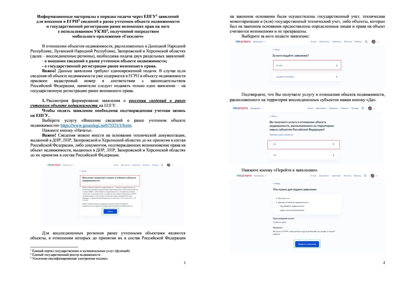 Информационные материалы о порядке подачи через ЕПГУ1 заявлений для внесения в ЕГРН2 сведений о ранее учтенном объекте недвижимости и государственной регистрации ранее возникших прав на него с использованием УКЭП3, полученной посредством мобильного приложения «Госключ»