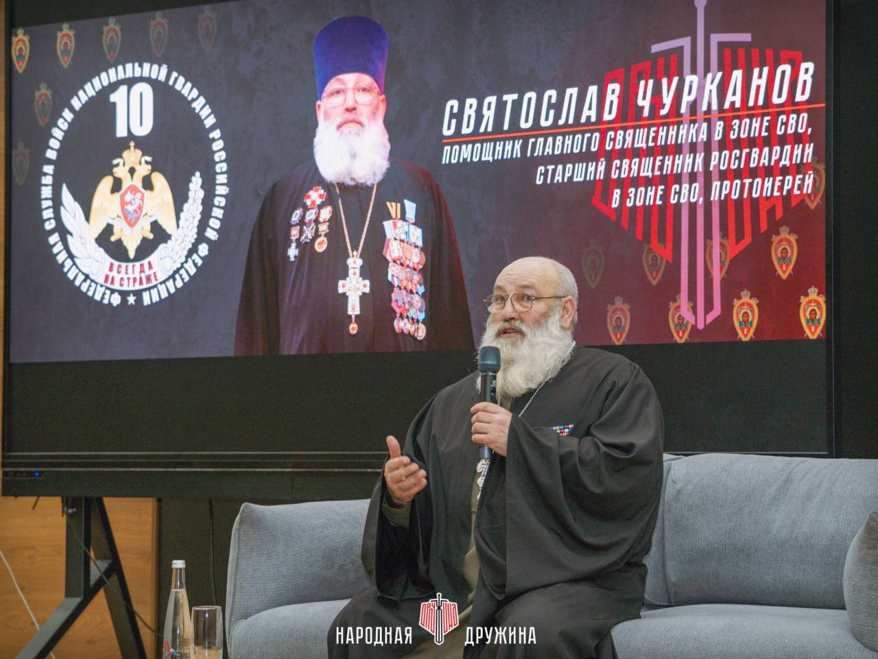В молодежном центре «30/09» в Донецке прошла встреча, посвященная военному духовенству. Мероприятие собрало дружинников и сотрудников Главного управления Росгвардии по ДНР. Главным спикером выступил старший священник Росгвардии в зоне проведения специальной военной операции, протоиерей Святослав Чурканов. Событие приурочили к десятилетию Росгвардии и 215-летию ее войск.