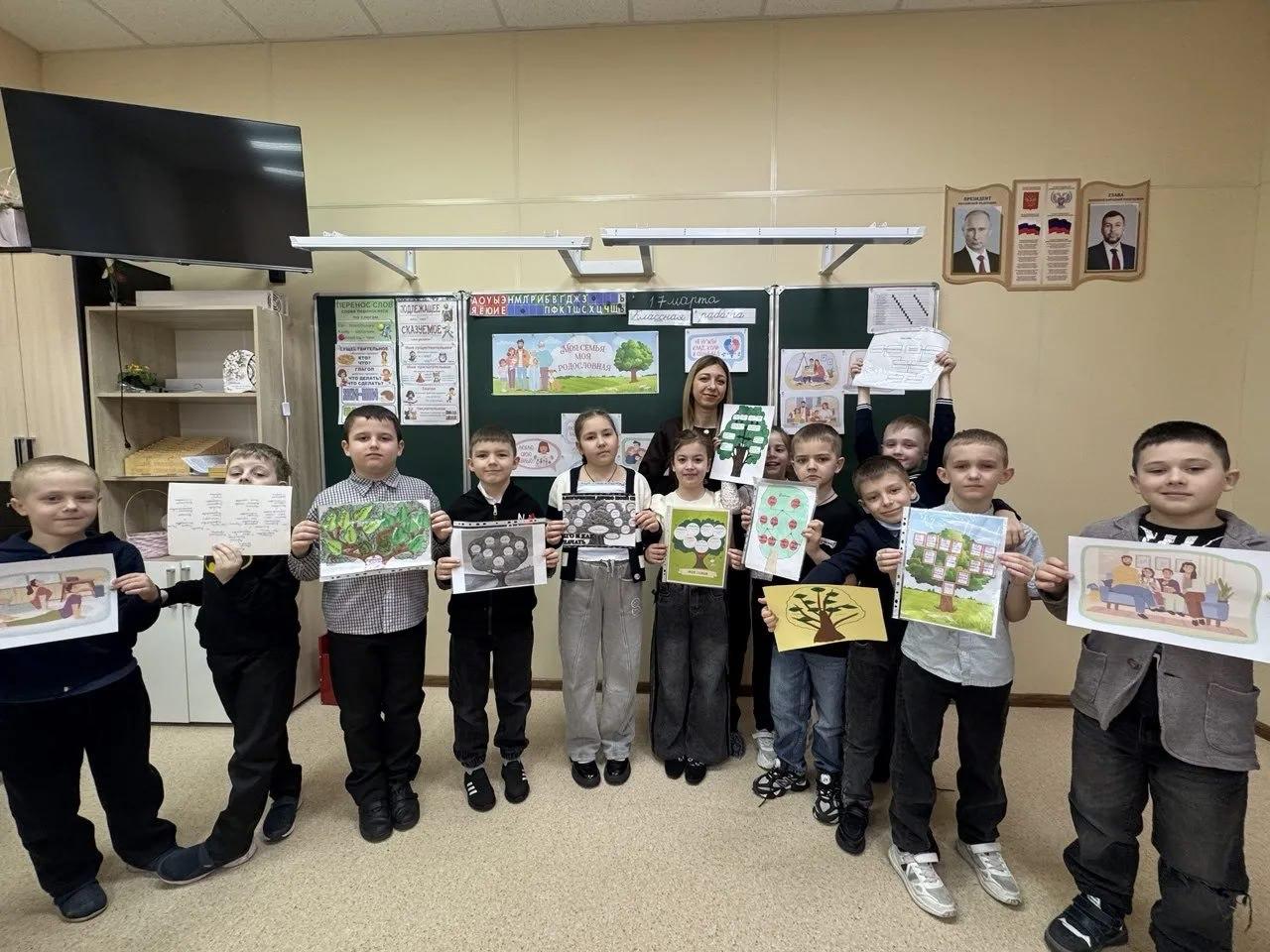 Специалисты отдела по работе с семьей с детьми Филиала № 27 Республиканского центра по предоставлению мер социальной поддержки Старобешевского округа провели урок «Моя семья. Моя родословная» для учеников младших классов Старобешевской школы № 1.