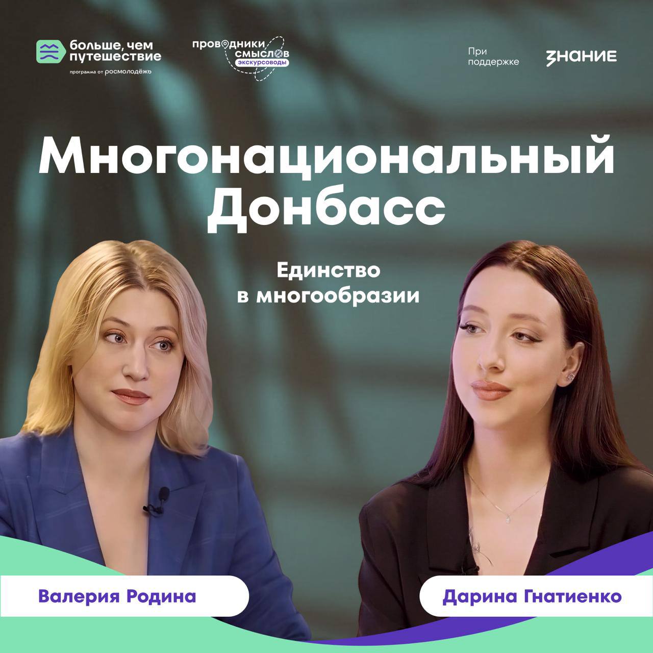 Проект «Проводники смыслов. Экскурсоводы Донбасса и Новороссии» реализуется программой Росмолодёжи«Больше, чем путешествие» при поддержке Российскогообщества «Знание».