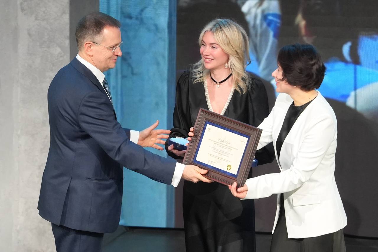 Национальный центр получил награду в Специальной тематической номинации, которая присуждается за масштабную деятельность по сохранению исторической памяти и празднованию 80-летия Великой Победы. Ее вручили помощник Президента РФ, председатель Российского военно-исторического общества Владимир Мединский и дирижер Фабио Мастранджело.