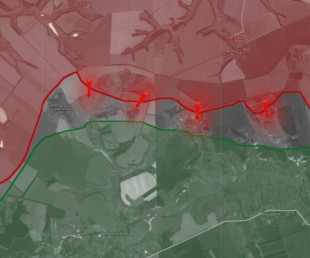 «На Харьковском направлении российские войска продвинулись на рубеже Графское – Симоновка вдоль берега реки Северский Донец и заняли рекреационный комплекс Сосновая Горка. Бои продолжают смещаться дальше в сторону Верхней Писаревки.