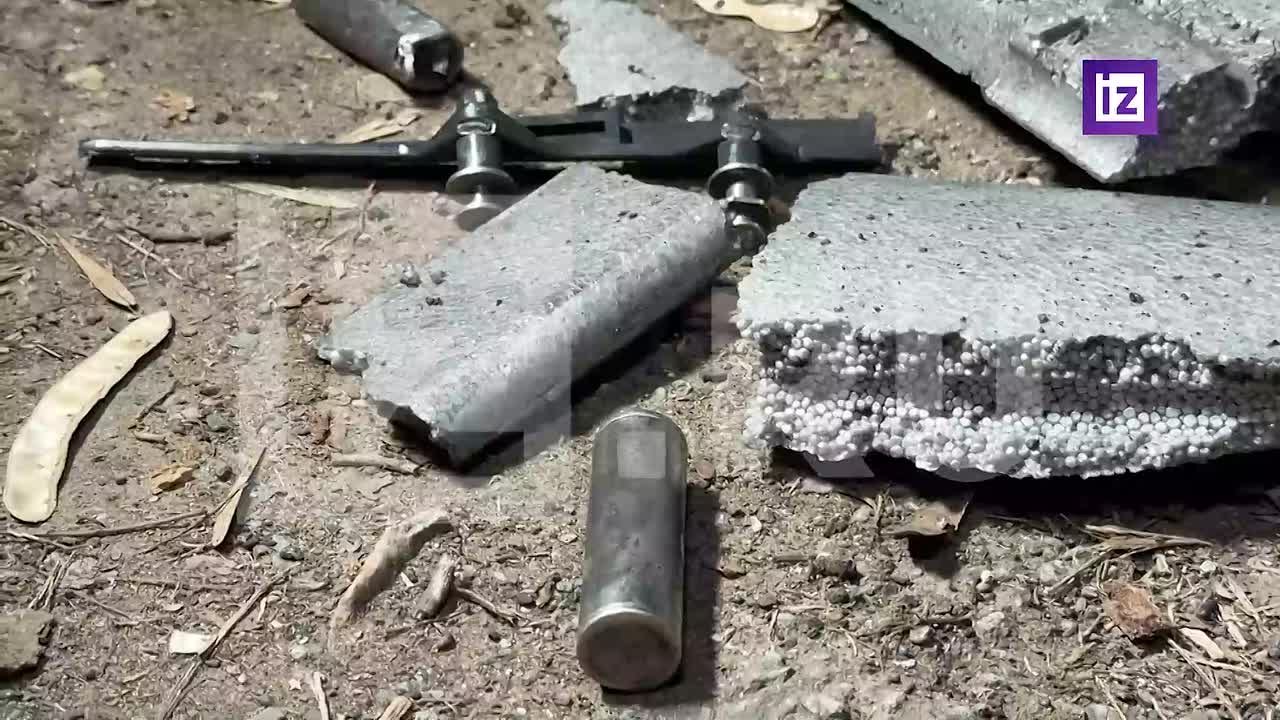 На кадрах видны повреждённые автомобили: лобовые и боковые стёкла пробиты осколками. Недалеко от жилого дома лежат обломки БПЛА, которые разбили дорожное покрытие и окна.