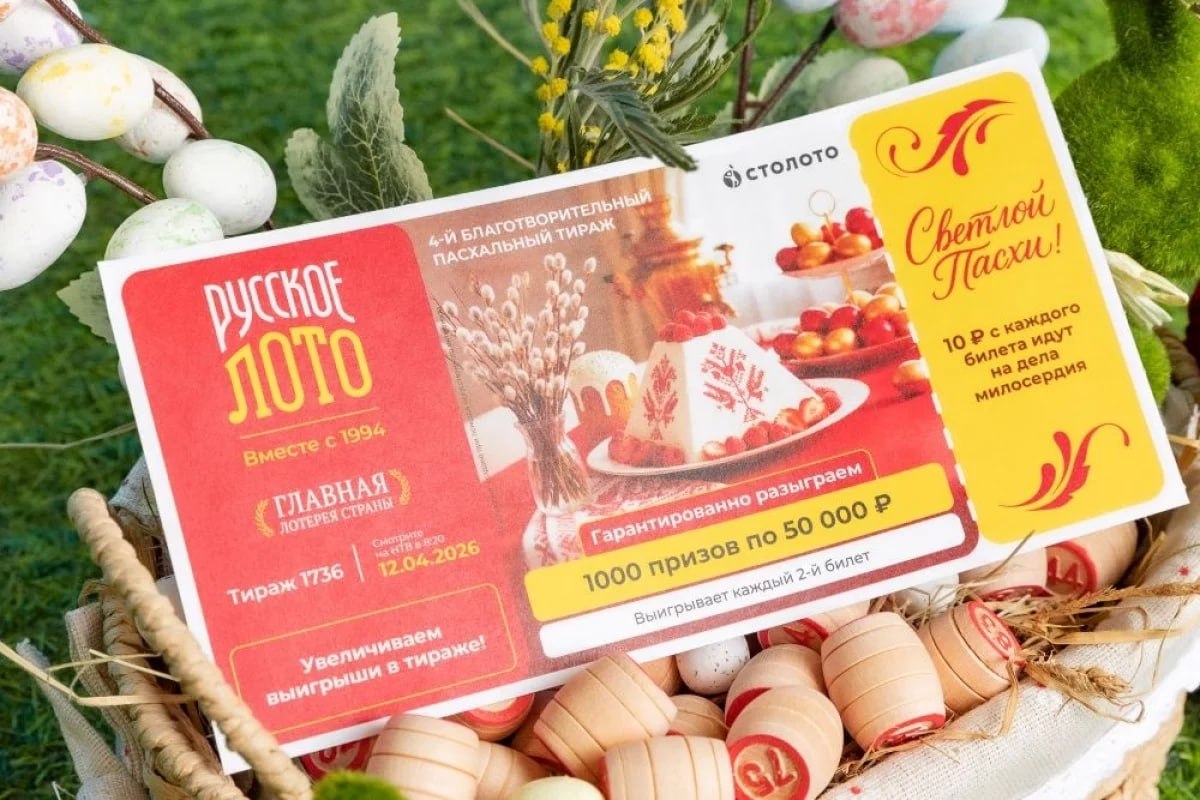 12 апреля в 8.20 утра будет разыгран очередной пасхальный тираж благотворительной лотереи «Русского лото» с джек-потом от 800 миллионов рублей!