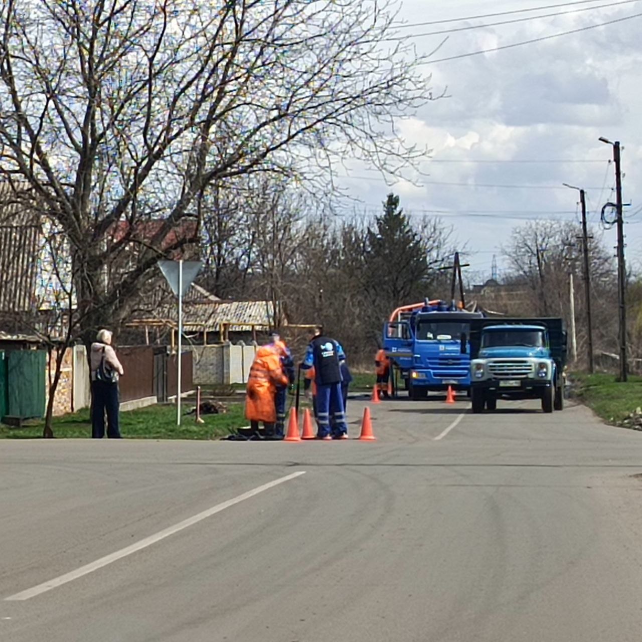 На пересечении ул. Комова и пер. Театральный аварийные бригады шеф-региона Нижегородской области проводят работы по устранению течи канализации.