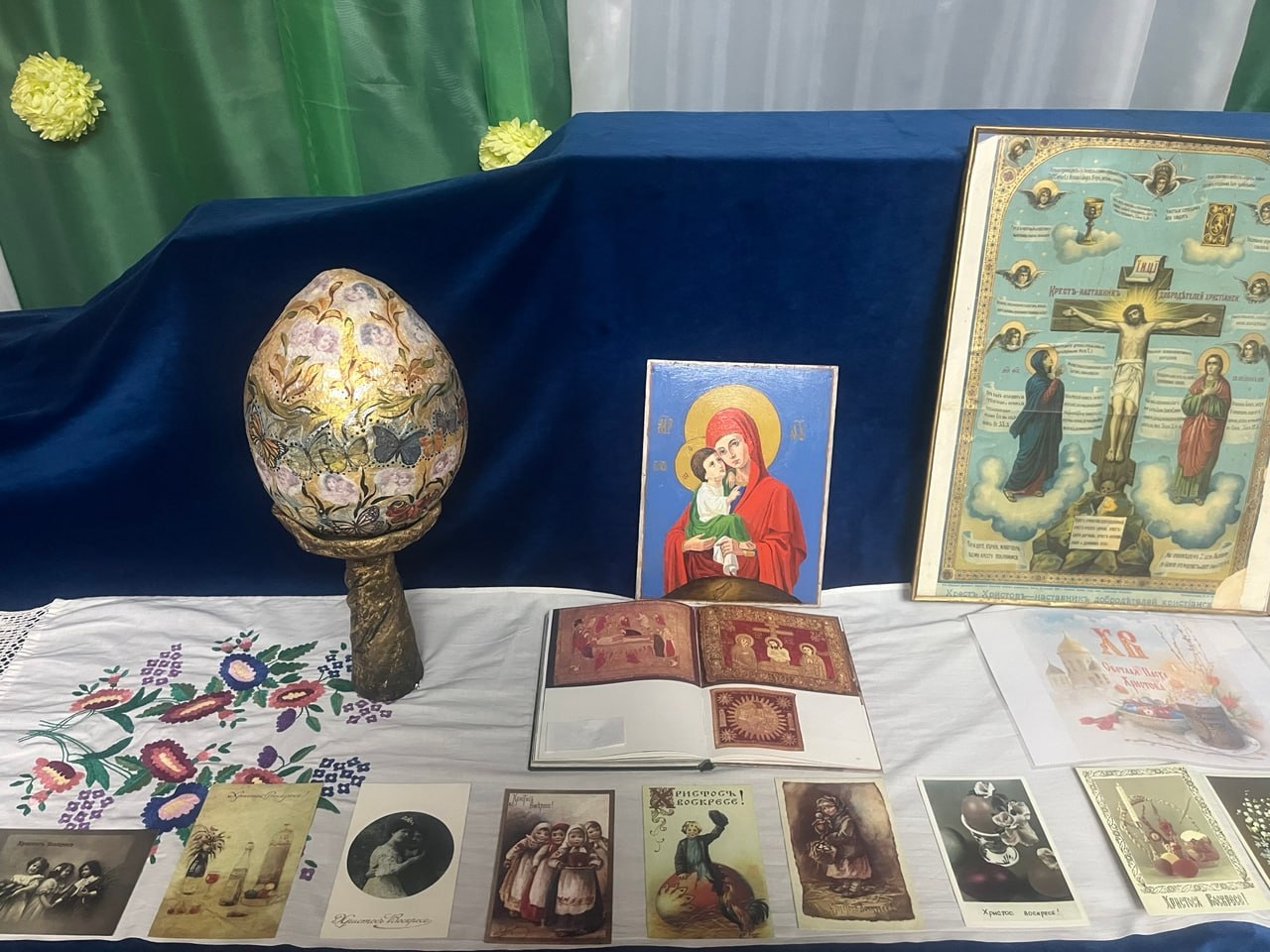 1 апреля 2026 года в холле Шахтерского Дворца культуры открылась выставка «Светлая Пасха Христова». На выставке представлены вышивки, иконы, пасхальные поделки, открытки.
