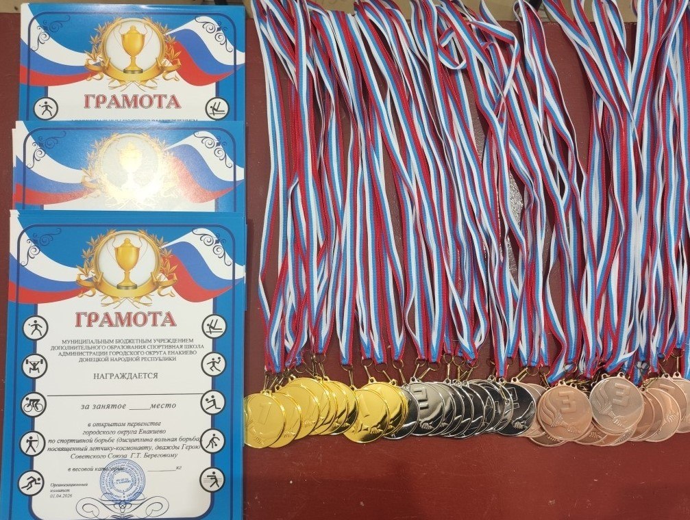 В рамках партийного проекта «Выбор сильных» Единой России, с целью спортивно-патриотического воспитания подрастающего поколения, повышения спортивного мастерства среди занимающихся в спортивной школе и пропаганды здорового образа жизни, 1 апреля в специализированном зале борьбы спортивной школы состоялось открытое первенство городского округа Енакиево по спортивной борьбе (дисциплина — вольная борьба), посвященное летчику-космонавту, дважды Герою Советского Союза Г. Т. Береговому.
