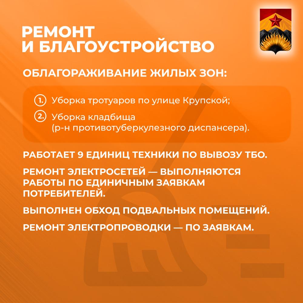 Сводка ЖКХ (ремонт и благоустройство) в Шахтерске на 2 апреля