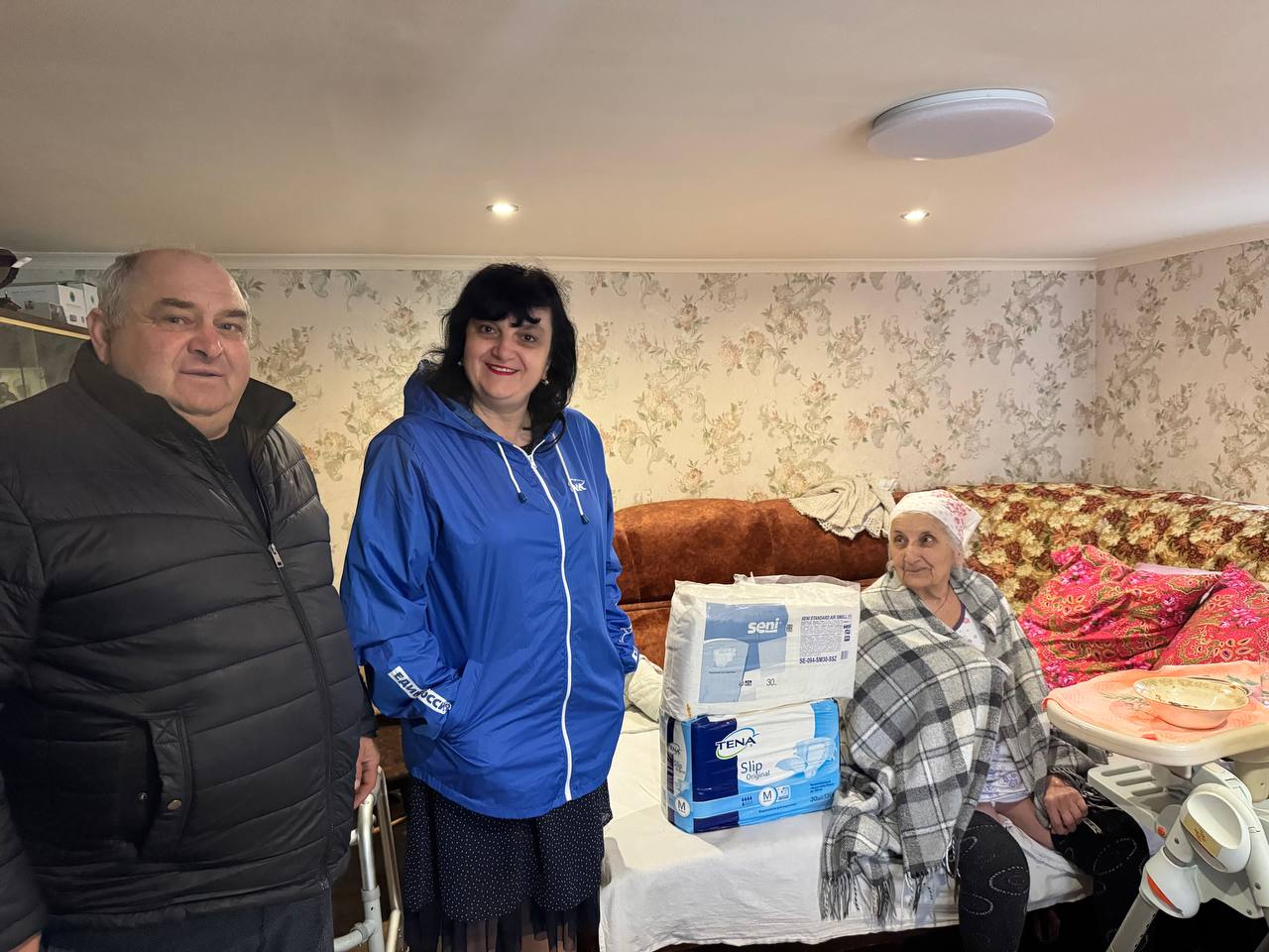 В рамках визита жительницам округа были переданы памперсы и выслушаны пожелания, просьбы и нужды.