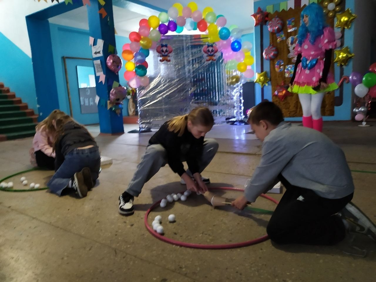 Мероприятие включало разнообразные конкурсы, такие как «Собери ленту», «Ответь правильно», «Пройди не касаясь», «Загадки-нескладушки», «Собери шарики».