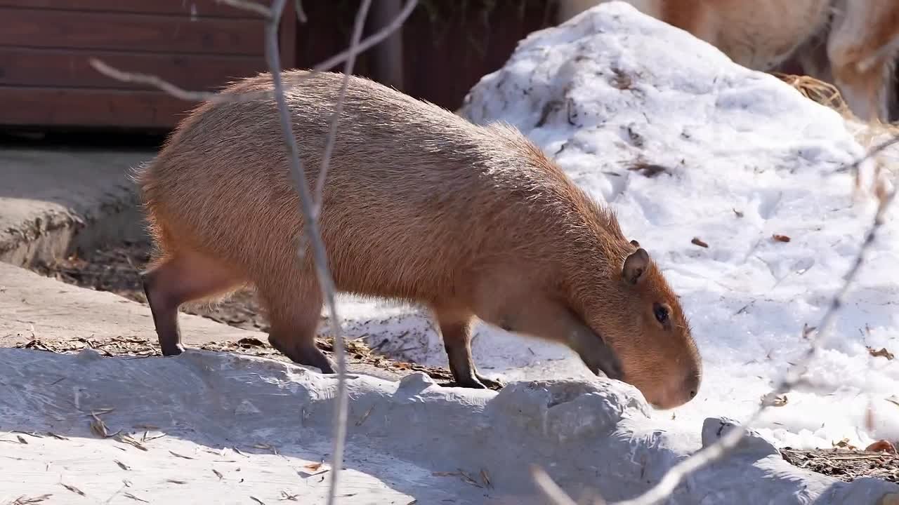 В Московском зоопарке капибар выпустили на весеннюю прогулку