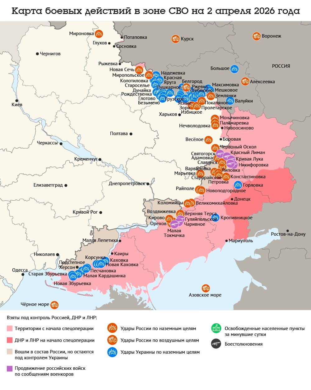 Карта боевых действий в зоне СВО на 2 апреля