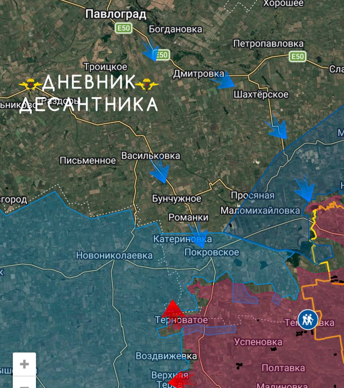 Также фиксируется наращивание группировки ВСУ в районе Павлограда, что говорит о возможных попытках ВСУ снова осуществить накаты на участке от Покровского до Новопавловки.