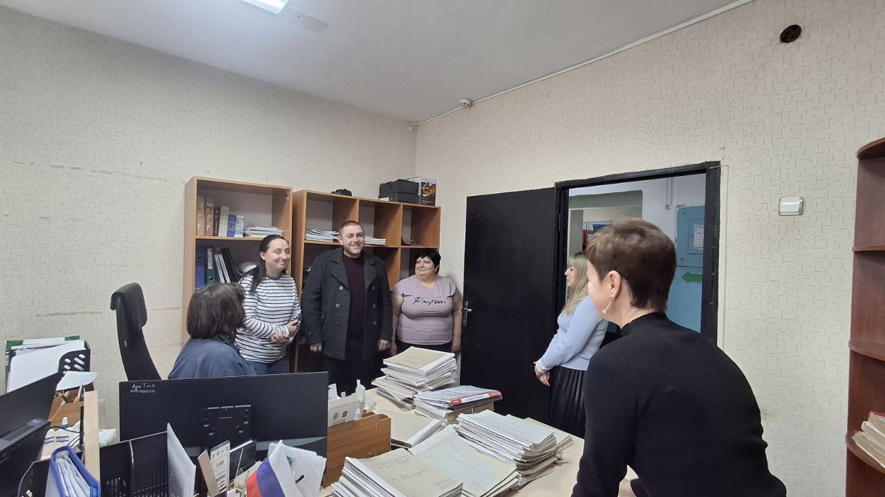 Сегодня депутат Тельмановского муниципального совета Максим Скрипка встретился с сотрудниками Архивного отдела Администрации Тельмановского муниципального округа.