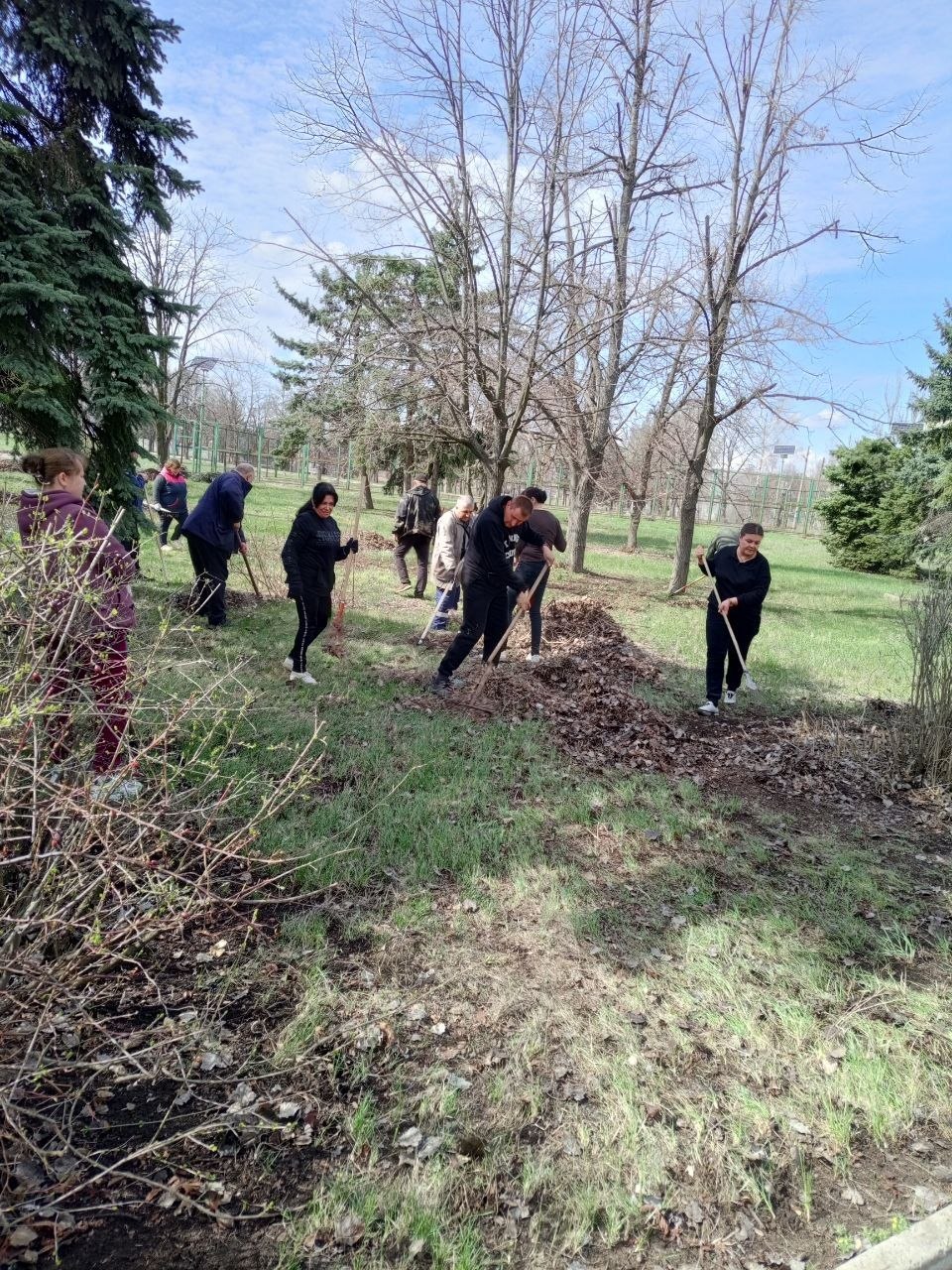 Жители поселка Новолуганское и сотрудники местных предприятий дружно вышли на большой субботник!