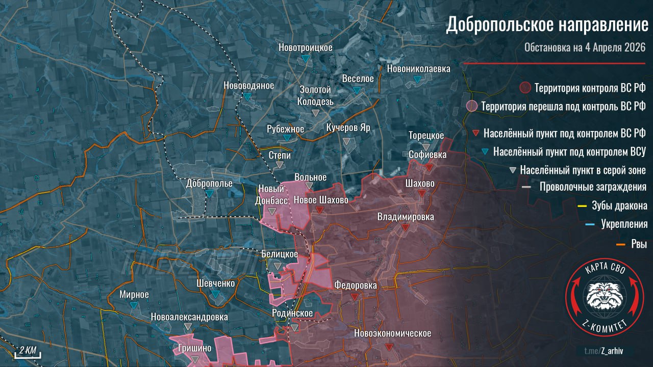 Фронтовая сводка на утро 05.04.26Запорожский фронт Продолжаются встречные бои в районе Степногорска и Приморского. (Рис. 1.1)На Гуляйпольском направлении идут бои северо-западнее Мирного. ВС РФ отражают контратаки противника в районе Чаривного. Выше...