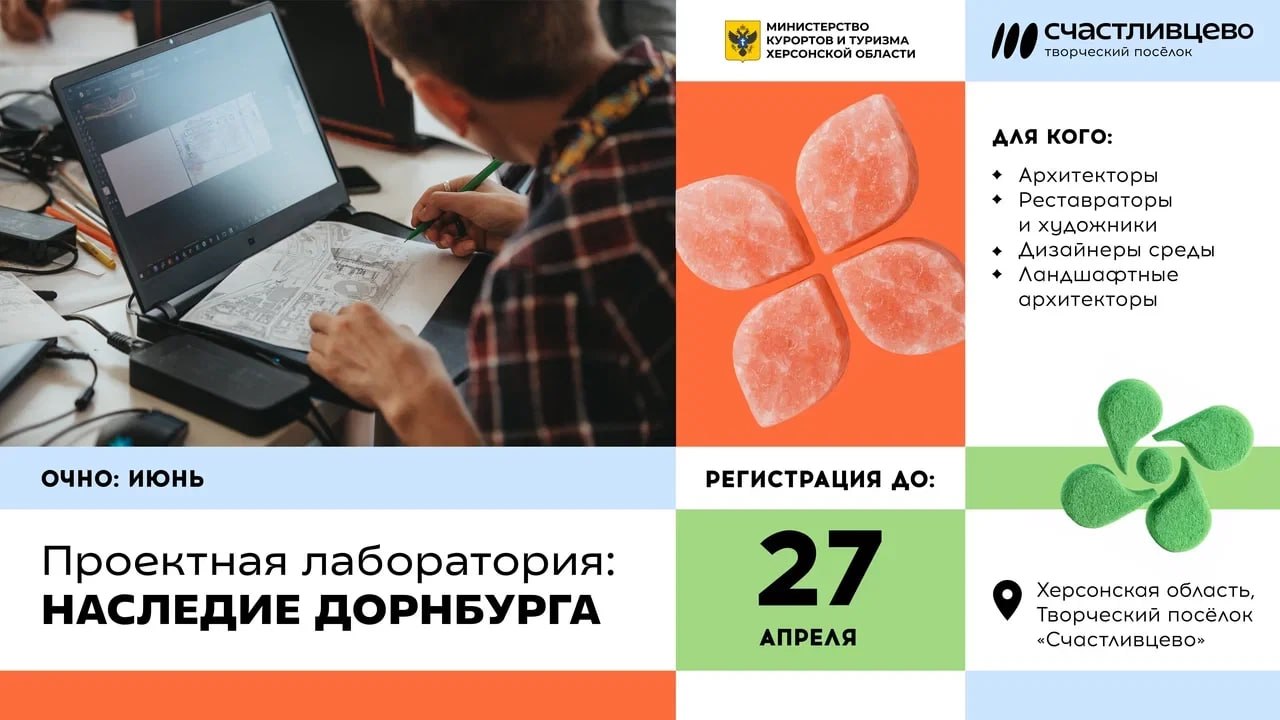 С 7 по 17 июня в творческом поселке «Счастливцево» в Геническе молодые архитекторы, реставраторы и дизайнеры будут работать над концепцией превращения этого объекта наследия в новую туристическую точку региона.