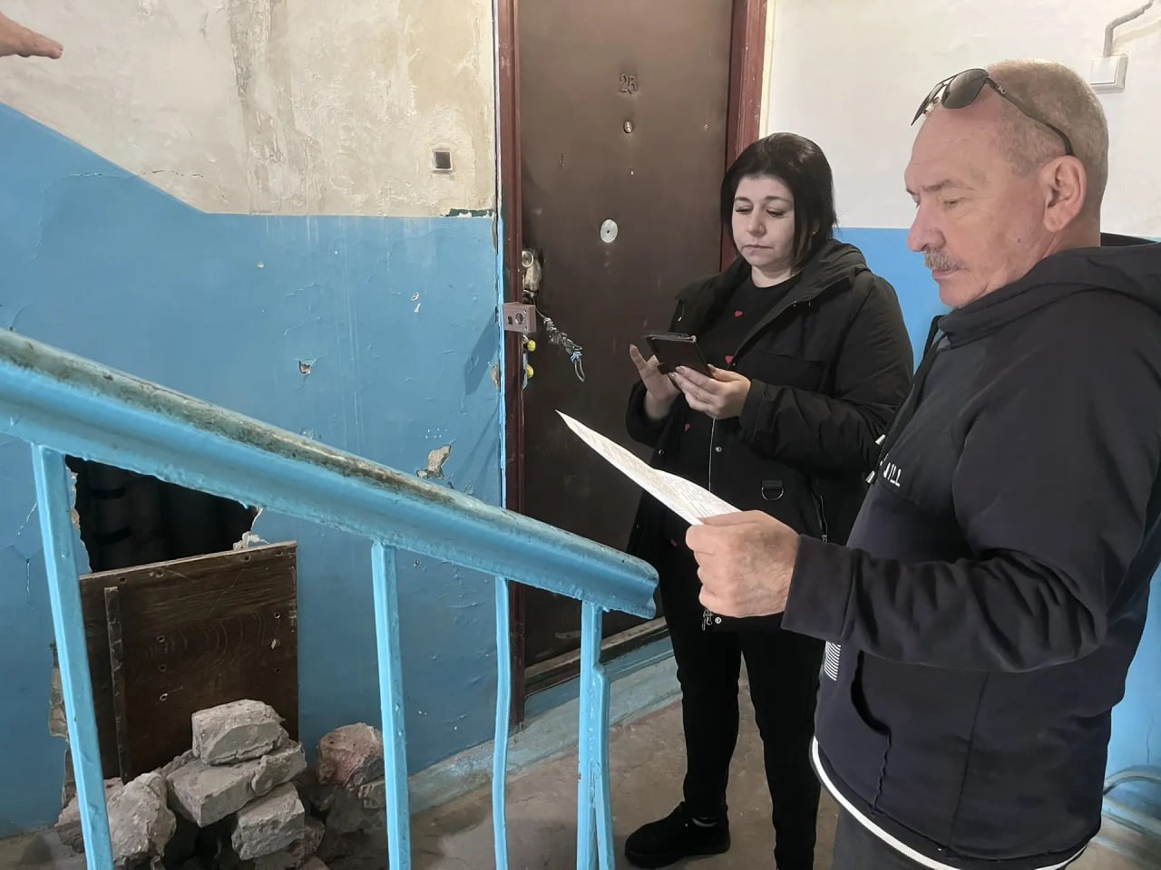 Управляющий делами Администрации муниципального образования г.о. Харцызск Александр Бабанов совместно с депутатом городского совета Дмитрием Ставицким провели встречу с жителями дома 24 по бульвару Полупанова