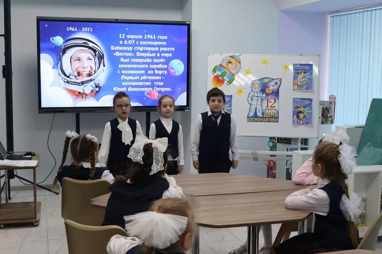 Ребята с большим интересом слушали рассказы о собаках Белке и Стрелке, которые до человека побывали в космосе, о первых покорителях звёздного неба: Юрии Гагарине, Валентине Терешковой, Алексее Леонове, о полёте в космос нашего земляка Георгия Берегового.