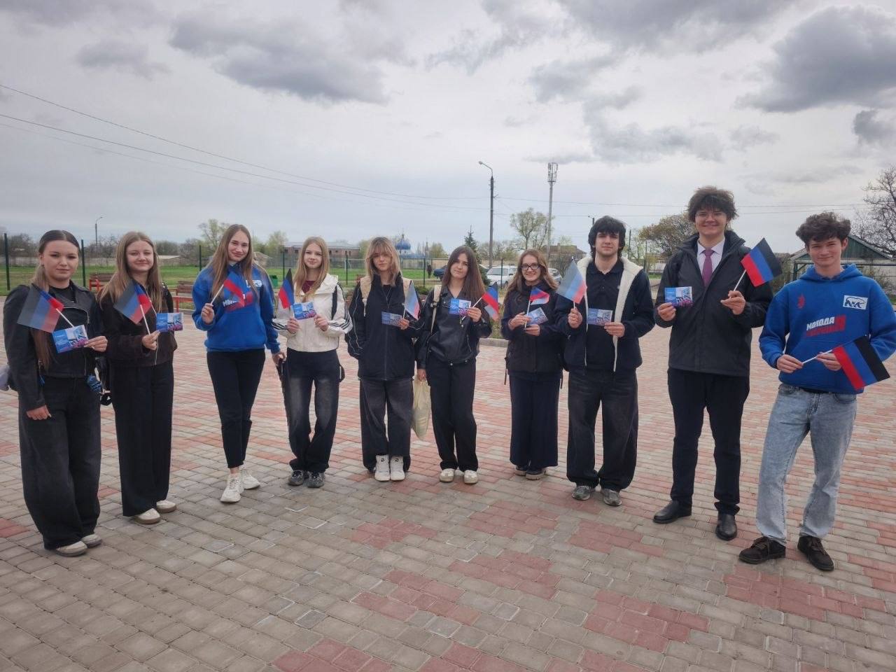 Молодёжка Мангуша раздала открытки и флажки, посвящённые Дню провозглашения Донецкой Народной Республики.