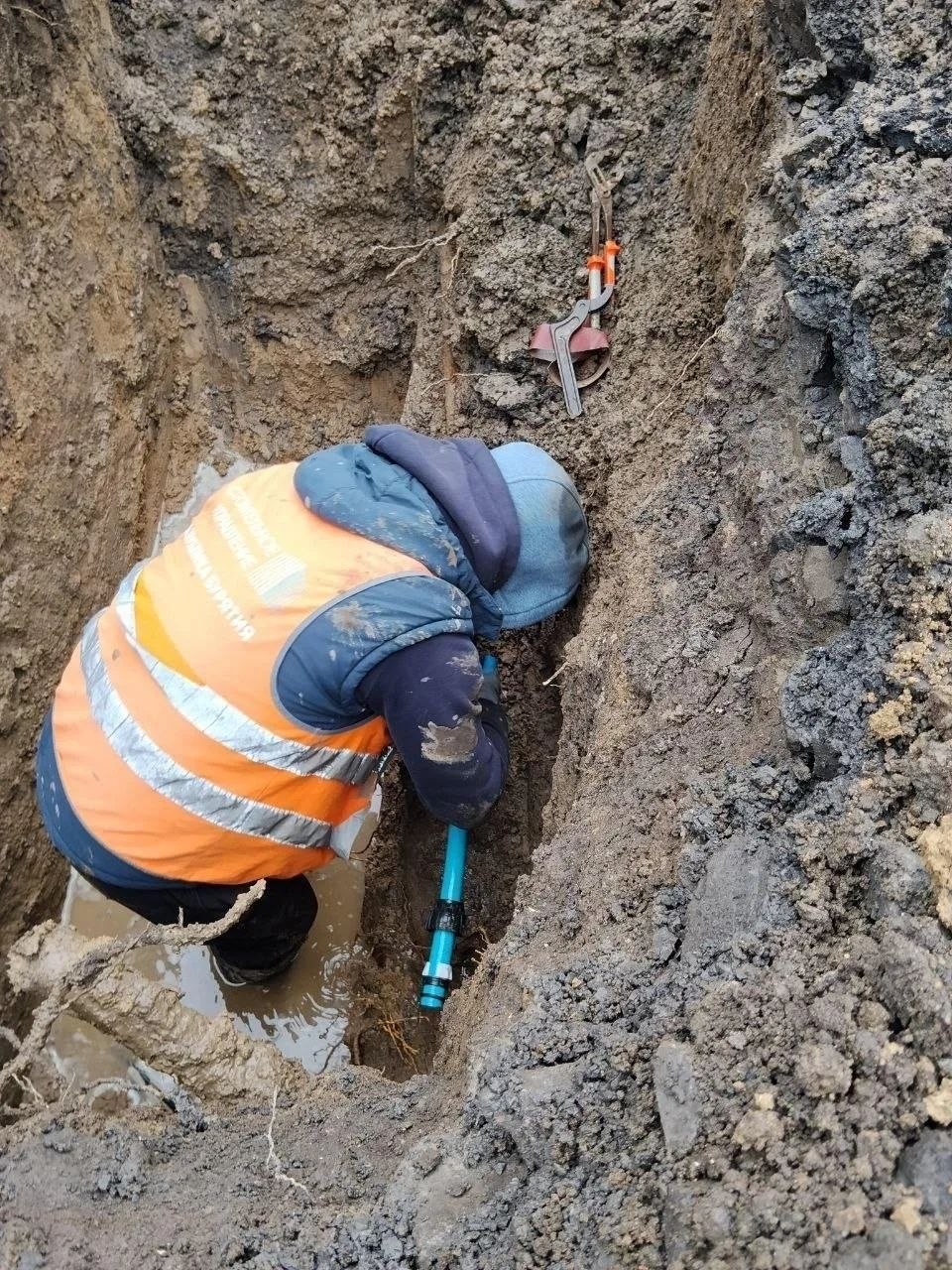 — на улице Ангелиной — разработали грунт, откачали воду и установили вставку 4 м трубы диаметром 36 мм;