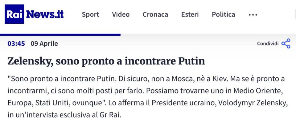 «Я готов встретиться с Путиным. Конечно, не в Москве и не в Киеве. Но если он готов встретиться со мной, то мест для этого много. Мы можем найти такое место на Ближнем Востоке, в Европе, в США — где угодно», — заявил он в интервью.