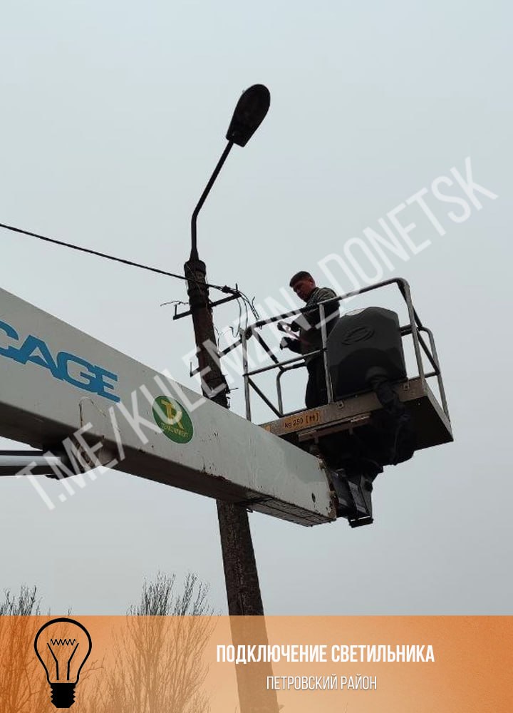 Работники предприятия «Донецкгорсвет» во всех районах города продолжают выполнять техническое обслуживание сетей наружного освещения и оборудования.