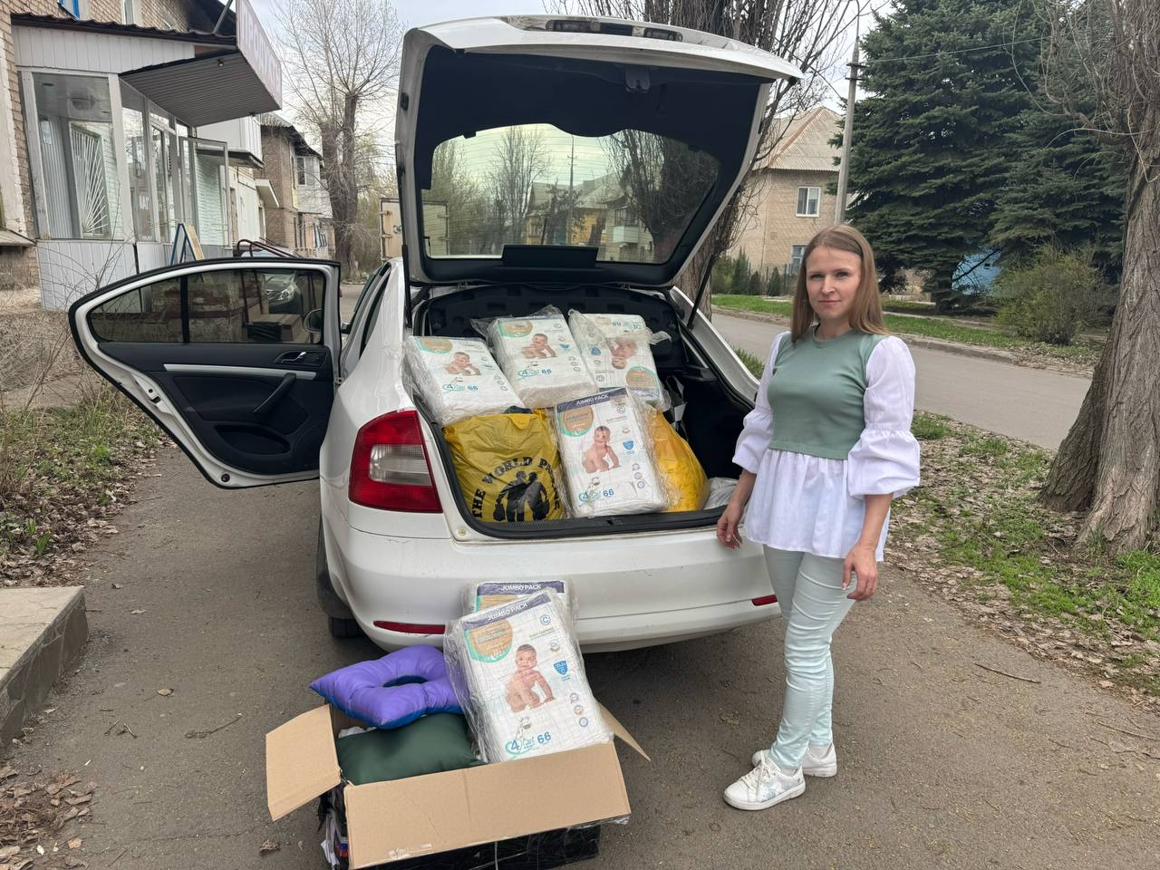 Передали волонтёру Юлии вещи и подгузники, которые она лично доставит тем, кто оказался в трудной жизненной ситуации.