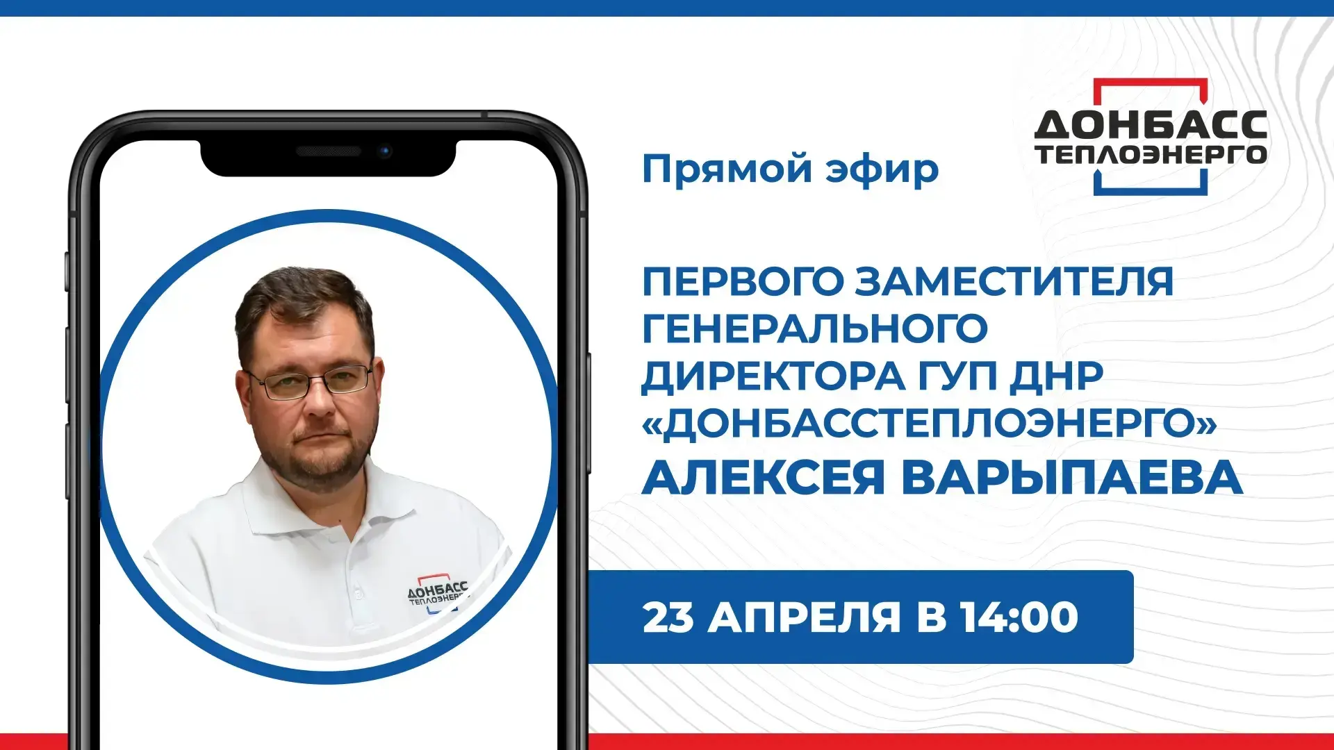 В четверг, 23 апреля, в 14:00 по поручению Главы ДНР Дениса Пушилина состоится прямой эфир с первым заместителем генерального директора ГУП ДНР «Донбасстеплоэнерго» Алексеем Варыпаевым.