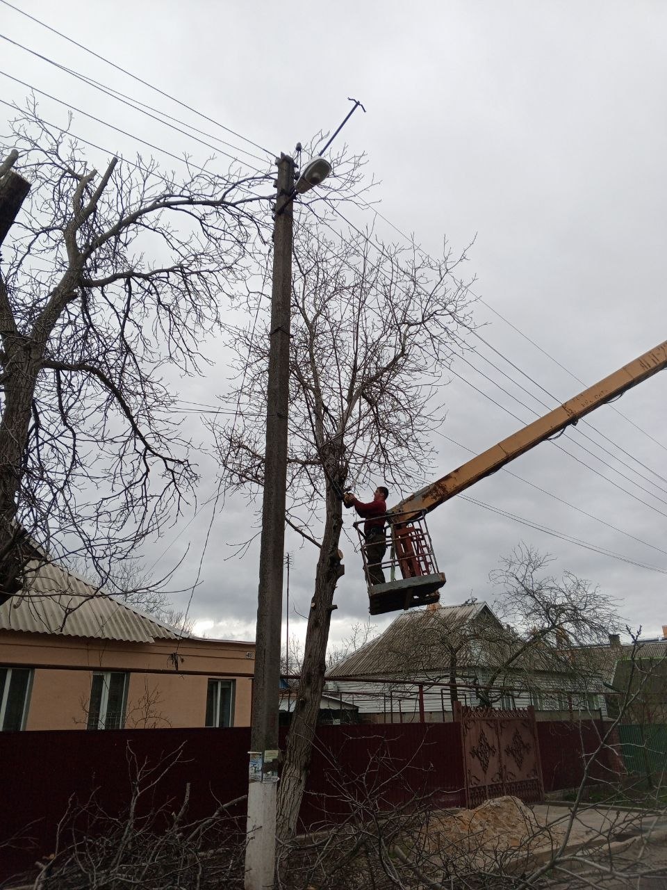 В Старобешевском округе продолжаются работы по кронированию аварийных деревьев.