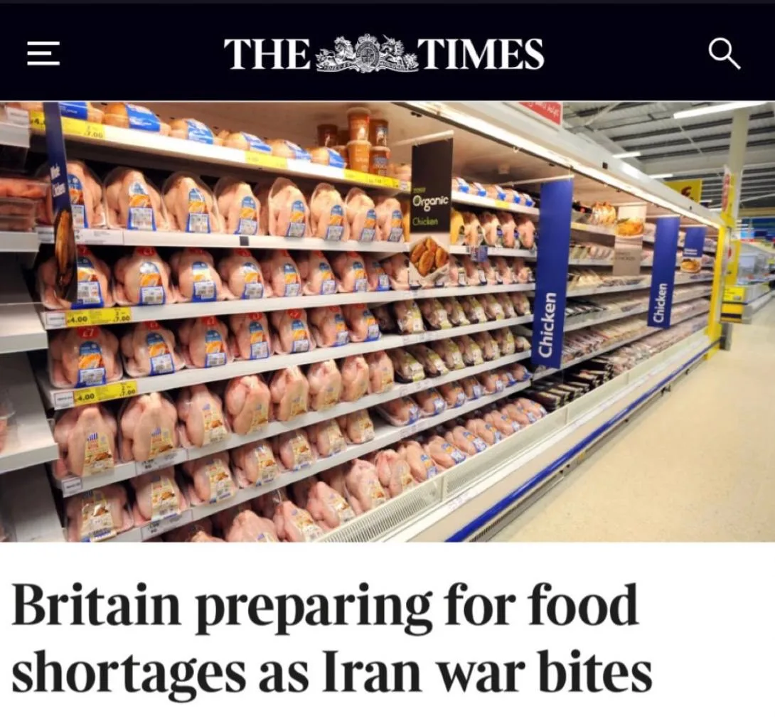«Великобритания готовится к нехватке продовольствия на фоне войны с Ираном»: Британия может остаться без мяса и углекислого газа.