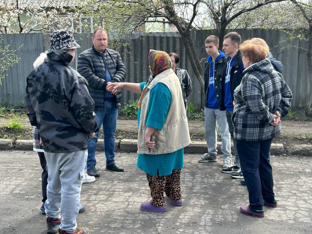 В рамках протокольного поручения Главы Донецкой Народной Республики Дениса Пушилина, Председатель Торезского городского совета Александр Казмерчук совместно с помощниками депутата Денисом Хуснутдиновым и Данилом Сенченко провел встречу с населением по улице Войкова.