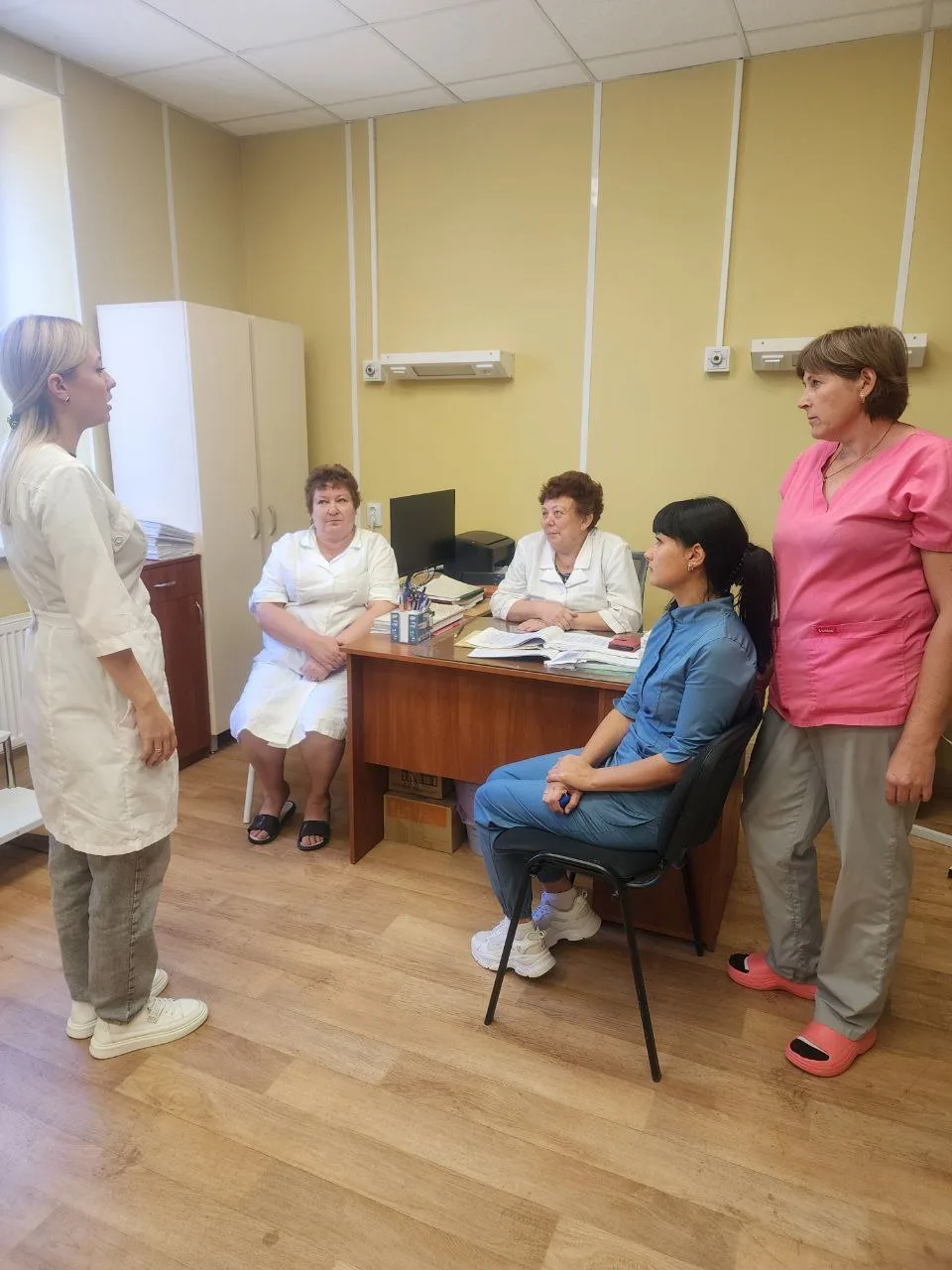 Сегодня депутат Тельмановского муниципального совета Юлия Линник встретилась с коллективом ГБУ ДНР «Центральная районная больница Тельмановского района».
