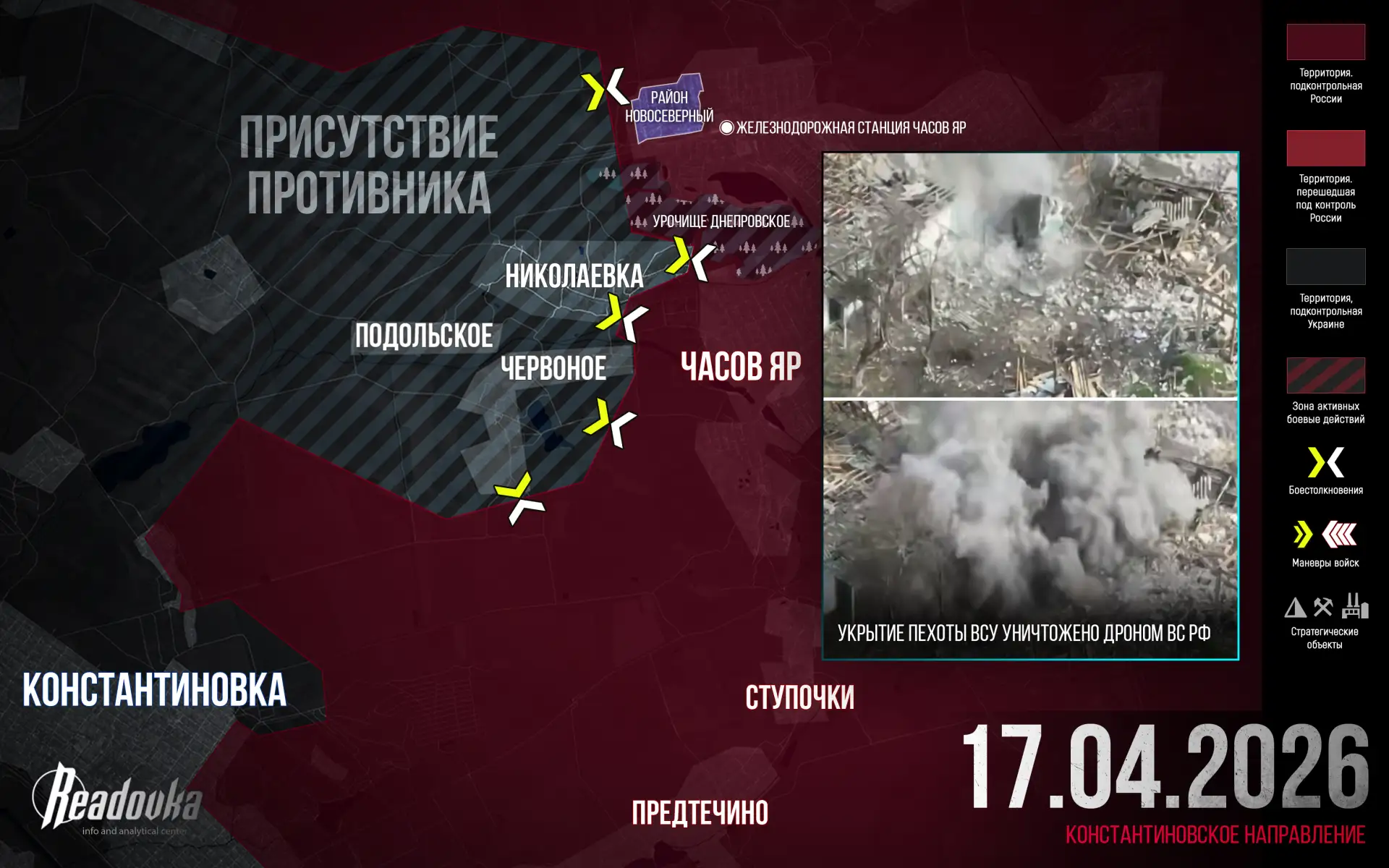 ВСУ пытаются отбить давление под Константиновкой ударами на Часов Яр — итоговая сводка Readovka за 17 апреля
