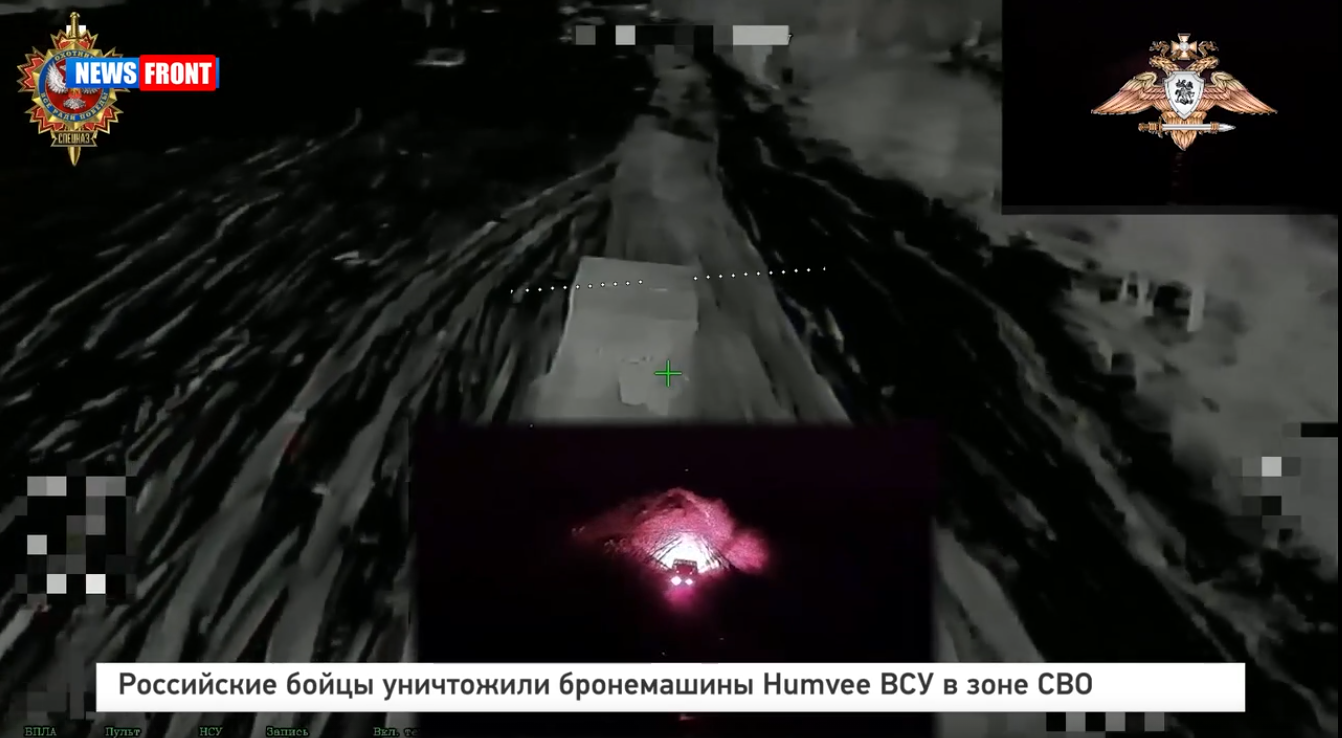 В ходе боевых действий на Константиновском направлении операторы FPV-дронов отряда специального назначения «Охотник», входящего в состав 51 гвардейской общевойсковой армии, осуществили успешное поражение двух бронемашин Humvee, перевозивших личный состав Вооруженных сил Украины.