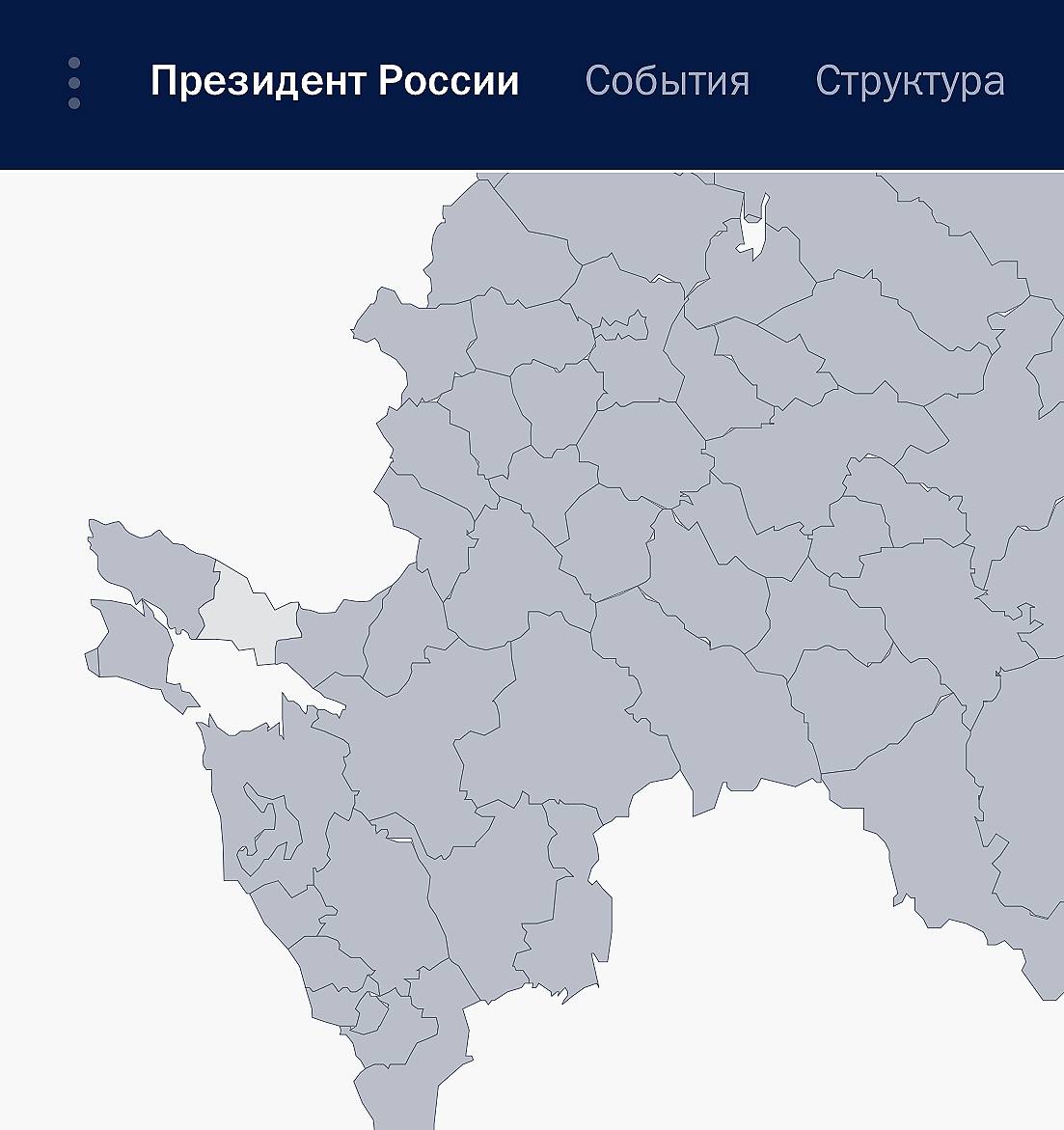 Источник карты: сайт Президента России (Запорожская область на карте выделена другим цветом в связи с тем, что Владимир Путин не посещал этот регион после вхождения в состав РФ)