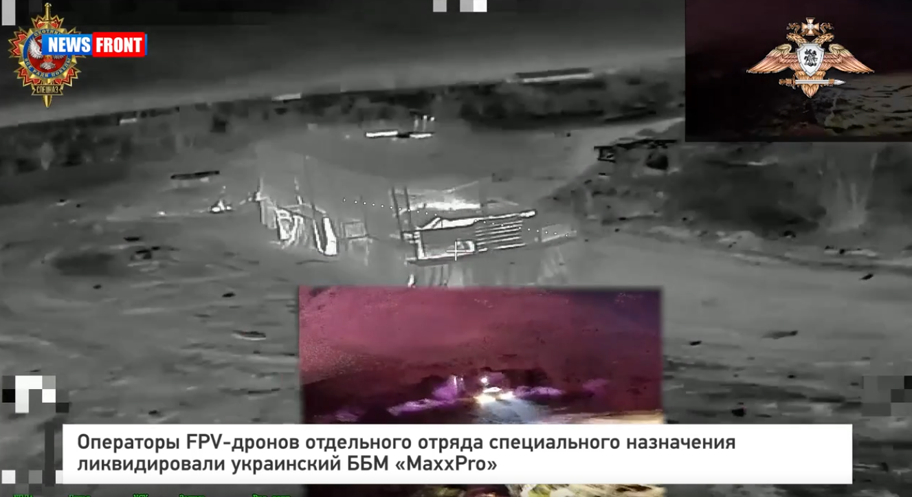 Операторы FPV-дронов отдельного отряда специального назначения «Охотник», входящего в состав 51?й гвардейской общевойсковой армии, на Константиновском направлении провели успешную операцию по уничтожению украинского бронетранспортера MaxxPro.