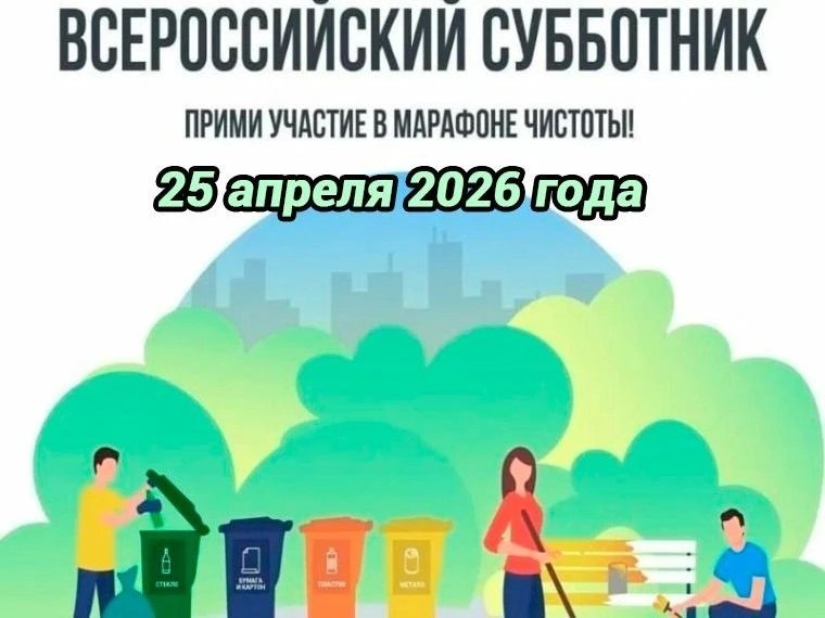 25 апреля 2026 года во всех регионах Российской Федерации пройдёт Всероссийский субботник.