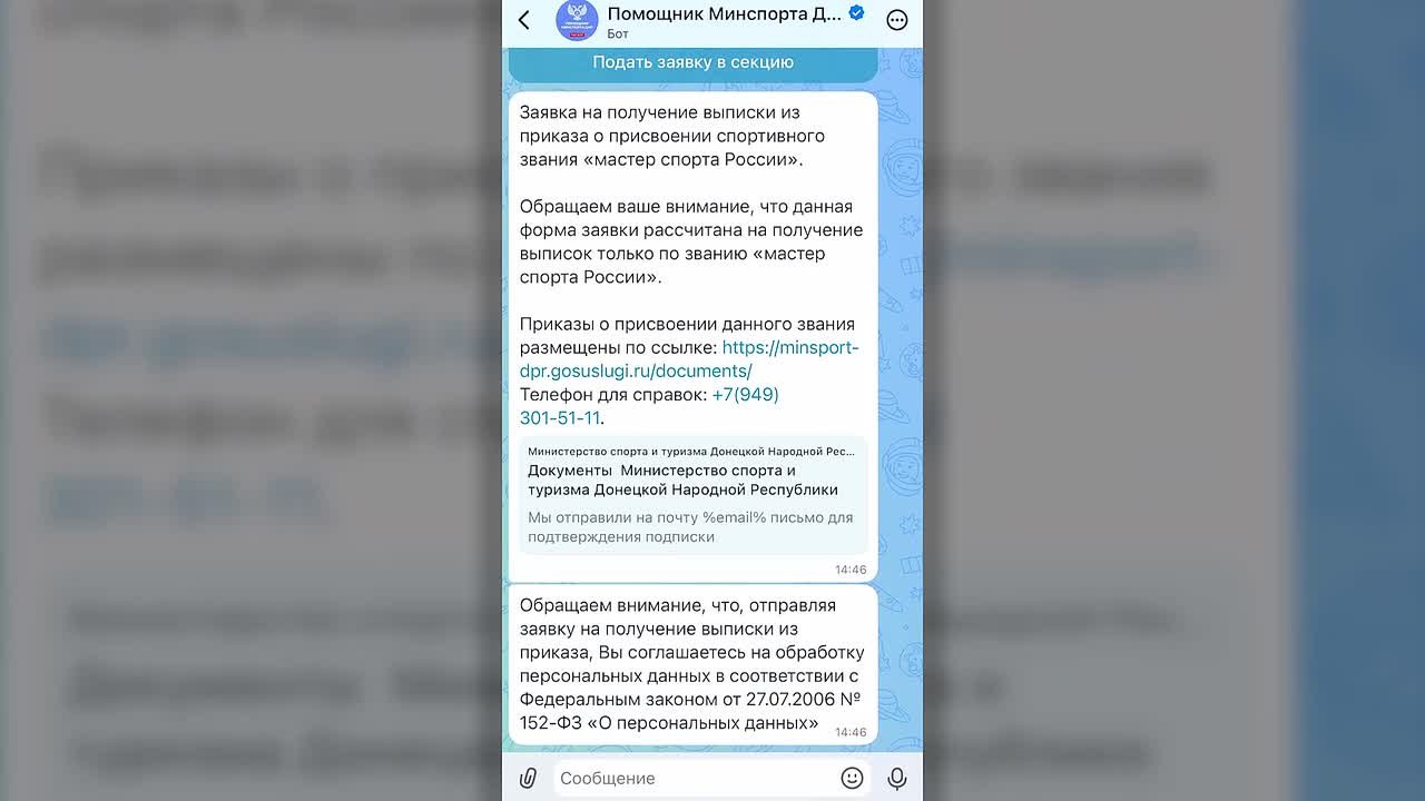 В мессенджере MAX запущен чат-бот «Помощник Минспорта ДНР»
