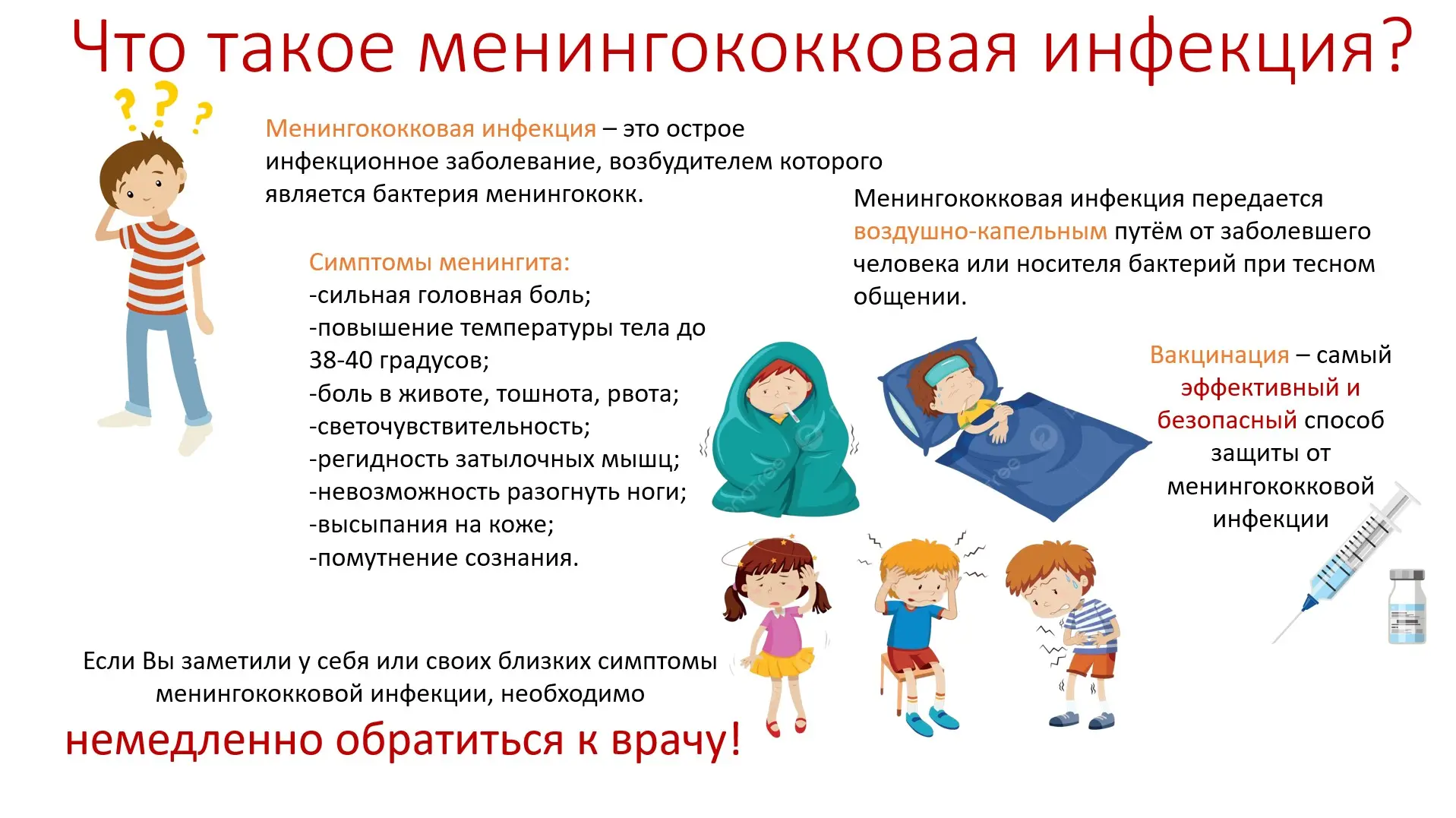 Территориальный отдел Управления Федеральной службы по надзору в сфере защиты прав потребителей и благополучия человека по ДНР в городе Докучаевск и Великоновоселковском, Волновахском, Кураховском районах информирует о профилактики менингококковой инфекции.