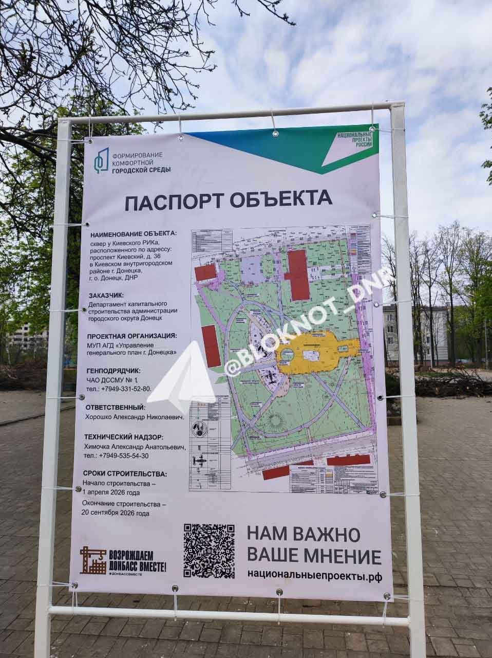 В сквере у Киевского РИКа в Донецке, наконец, выставили паспорт объекта реконструкции