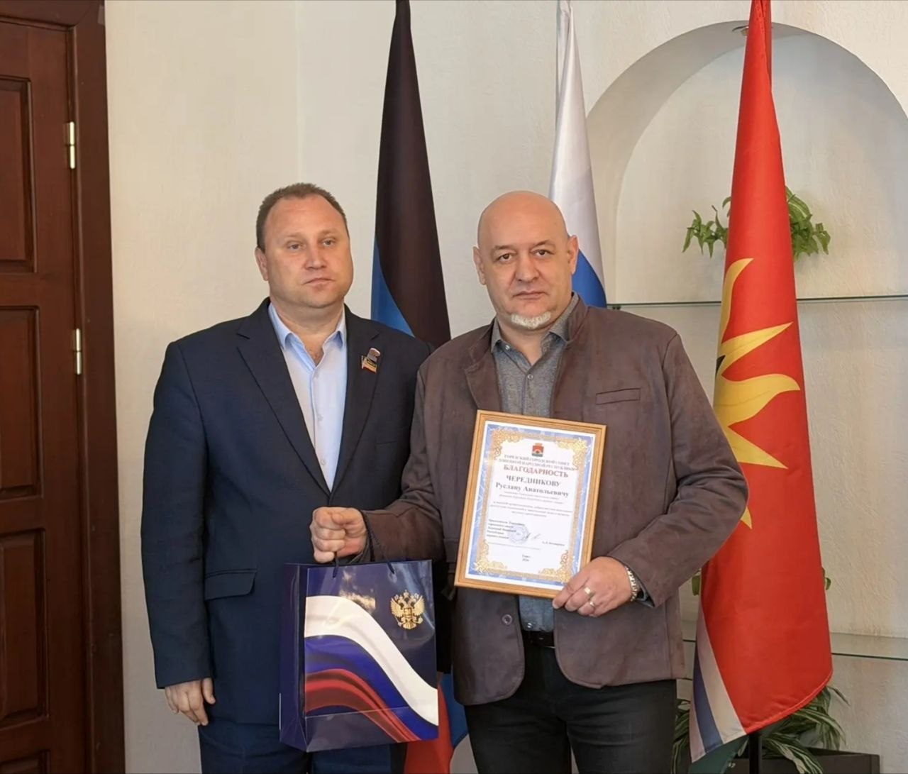 Александр Леонидович вручил депутатам Благодарности Торезского городского совета, отметив их вклад в решение вопросов местного значения и работу на благо жителей. Особую значимость событию придало вручение Благодарственных писем Государственной Думы Федерального Собрания Российской Федерации, что является признанием труда торезских депутатов на федеральном уровне.