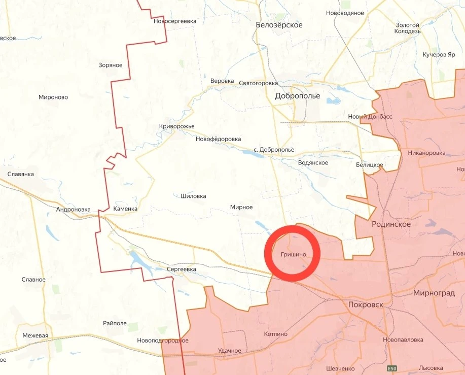 Российские войска освободили важный и большой населённый пункт Гришино западнее Покровска (Красноармейск) и Мирнограда (Димитров), сообщает Минобороны РФ