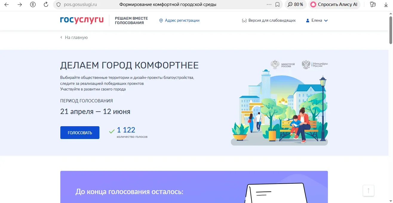 21 апреля стартовало Всероссийское онлайн-голосование по отбору общественных территорий для благоустройства! Это грандиозное событие предоставляет каждому из вас уникальную возможность принять непосредственное участие в формировании облика нашего округа. Ваш голос имеет значение, ведь именно вам предстоит выбирать, какие парки, скверыили другие общественные пространства будут обновлены и преображены в ближайшем будущем.