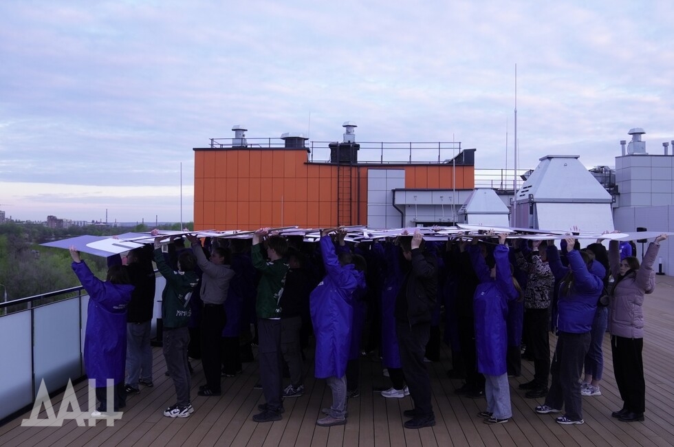 Донецк, 23 апр — ДАН. Порядка 120 активистов «Молодой Гвардии» ДНР выстроили масштабный портрет Сергея Прокофьева на крыше Дома молодежи «30/09». На месте побывал корр. Донецкого агентства новостей.