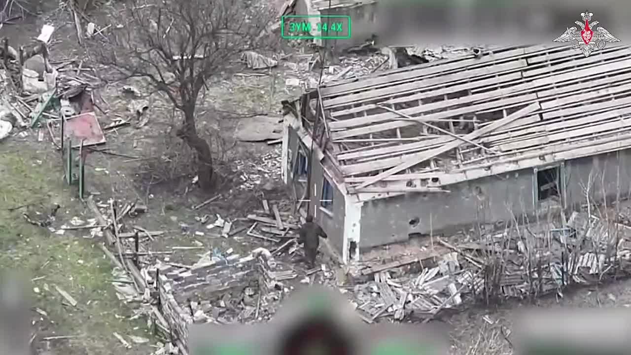 Действуя с максимальной скрытностью, он методично проник в зону обороны противника. Вместо прямого штурма боец выбрал путь точечного, но абсолютно смертоносного воздействия. Поочередно, он подобрался к каждому из укрепленных зданий, работая как часы, и заложил взрывные устройства в оконные проемы.