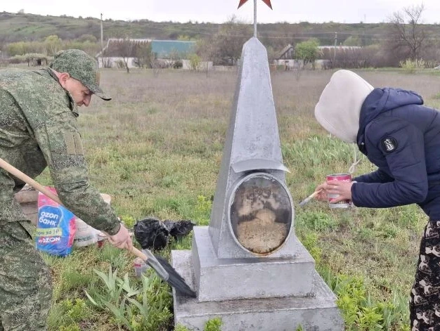 С целью сохранения исторической памяти, работниками Мариновского сельского клуба и военнослужащим 589 гв. МСП в селе Красная Заря проводятся работы по благоустройству территории братской могилы.