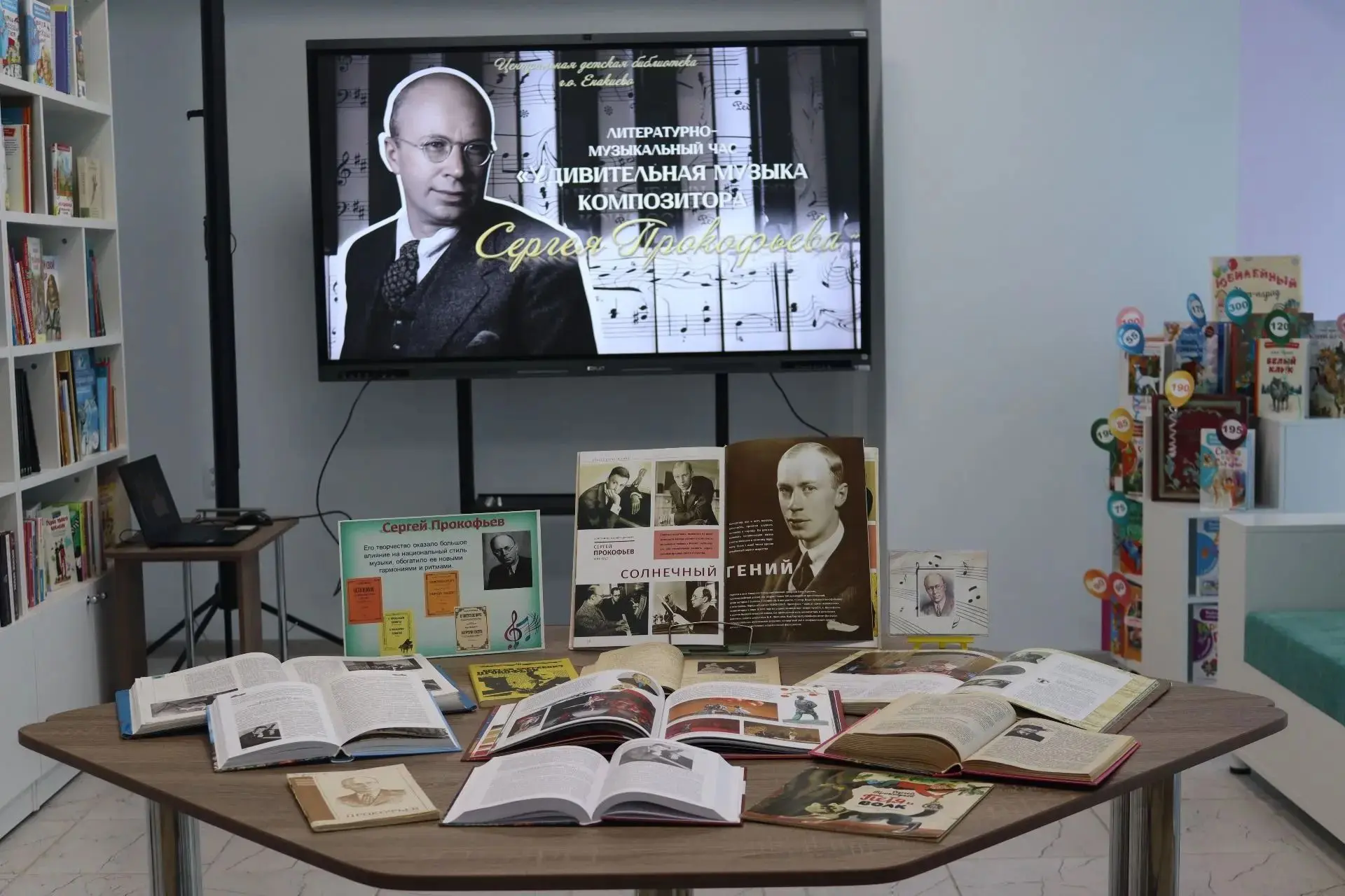 К 135-летию со дня рождения русского композитора Сергея Прокофьева Центральная детская библиотека подготовила и провела литературно-музыкальный час «Удивительная музыка композитора Сергея Прокофьева». Участниками мероприятия стали обучающиеся 6 «Б» класса школы №1 городского округа Енакиево.