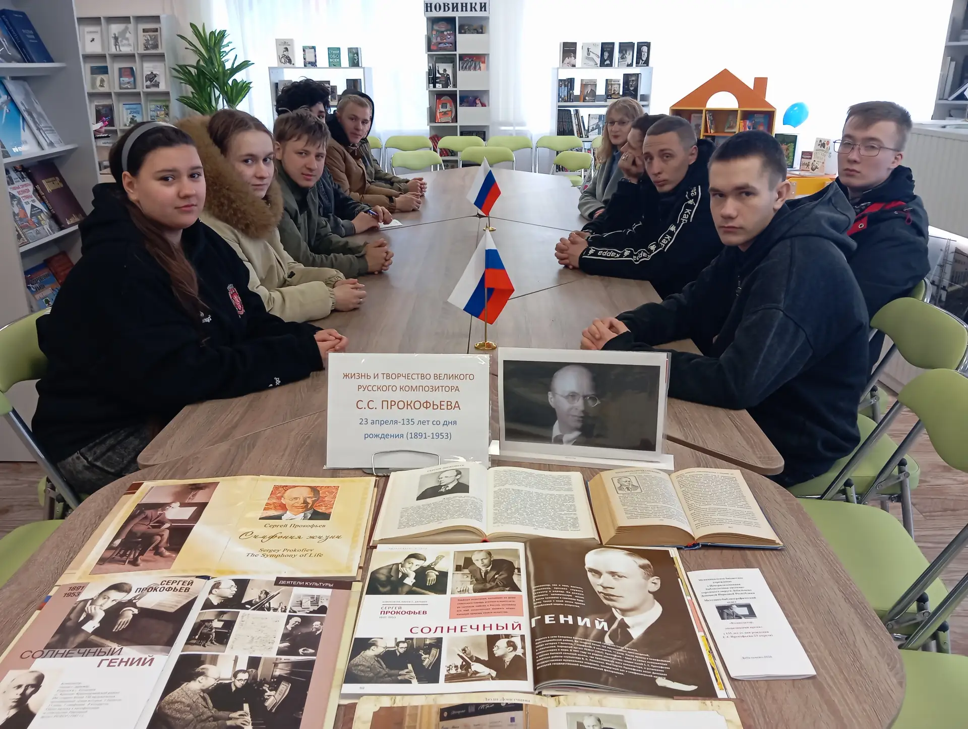 Сергея Сергеевича Прокофьева - выдающегося композитора, пианиста, дирижёра, классика русской музыки XX века, земляка, родившегося на Донбассе. В рамках работы Центра популяризации русского языка и культуры «Русское слово» сотрудник читального зала центральной городской модельной библиотеки для обучающихся Дебальцевского колледжа транспортной инфраструктуры провела литературно-музыкальную гостиную «Учитесь слушать музыку». Она рассказала ребятам, что С. Прокофьев – фигура очень заметная среди музыкантов двадцатого столетия. Он был самым знаменитым композитором Советского Союза и одним из самых значительных музыкантов мира, всегда искал новое, развивался, делал звучание своей музыки ни на что не похожим. За это Прокофьева любили, боготворили, им восхищались, и вместе с тем порой он был столь нов и своеволен, что его не понимали. Но все же он был, он творил, он поражал и радовал. Радовал взрослых и детей, создавал нечто новое, чего никто до него не мог придумать. Музыка Сергея Прокофьева может вызывать самые различные чувства и эмоции: слёзы, радость, умиление, страсть, раздражение, восторг, удивление. Но, несомненно, одно – она никого не оставит равнодушным. Участники мероприятия узнали интересные факты из жизни и творчества С.С.Прокофьева, послушали отрывки из самых знаковых музыкальных произведений композитора-юбиляра: «Шествие кузнечиков», «Первая часть концерта № 1», «Любовь к трем апельсинам. Марш», «Вставайте люди русские», «Танец рыцарей» из балета «Ромео и Джульетта», «Первая часть классической симфонии». Также познакомились с выставкой-портретом «Жизнь и творчество великого русского композитора С.С. Прокофьева» и информационным буклетом «Композитор, опередивший время», составленным библиографом Нисенбаум С.В. Прокофьев не только гениальный художник звука, он еще и выдающийся мастер слова. Его незаурядные литературные способности проявились в написании серии рассказов, «Автобиографии», «Дневника» и оперных либретто. Донецкий республиканский краеведческий музей и его отдел-мемориальный музей С.С.Прокофьева поддерживает тесные связи с наследниками великого земляка. Так, в рамках подготовки празднования 100-летия со дня рождения С.С. Прокофьева в 1990 году состоялась встреча с сыном Святославом Сергеевичем Прокофьевым в Москве. Музею были переданы некоторые личные вещи С.С. Прокофьева для будущей экспозиции и создаваемого мемориального комплекса. Начиная с 2003 года из Франции сын и внук С.Прокофьева присылают уникальные издания: «Дневник», «Автобиография» С. Прокофьева, журнал «Три апельсина», издаваемый в Лондоне. В 2009 году Прокофьевы на презентации «Деревянной книги» в Москве передали в дар это уникальное факсимильное издание.